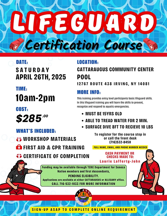 The CCC will be hosting our yearly Lifeguard Certification class! Check out all the details provided.