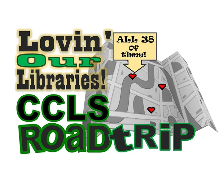 To start your Road Trip…Pick up your free official Road Trip Map at your local library or any CCLS library anytime and get your 1st library stamp for your map, and plan which library you want to visit next!