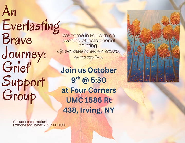Thursday, October 9, 2025 starting at 5pm at the Four Corners United Methodist Church, located at 1586 Route, 438, Irving, NY 14081.