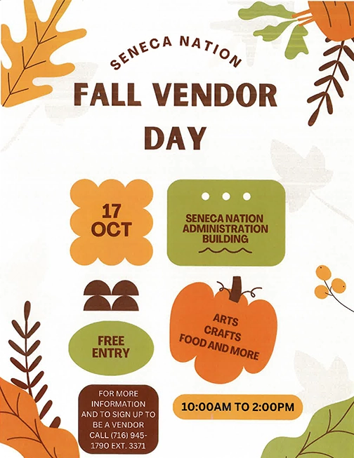 The Seneca Nation Clerk’s Office is seeking Non-Profit Organizations to serve refreshments and or lunch during Council each month. If any Organizations are interested, you may contact Leslie Cooke at Leslie.cooke@sni.org, 716-532-4900, ext. 5046 to request a form. Forms are also available at the Clerk’s Office. Any questions can be directed to Leslie Cooke.