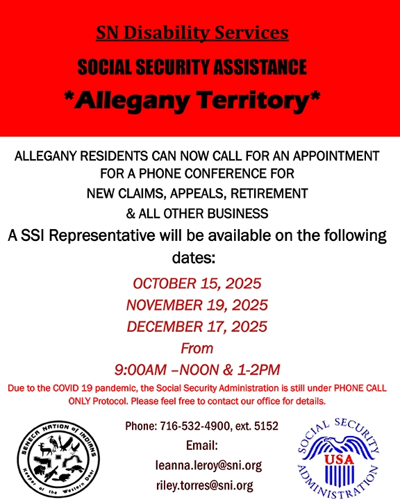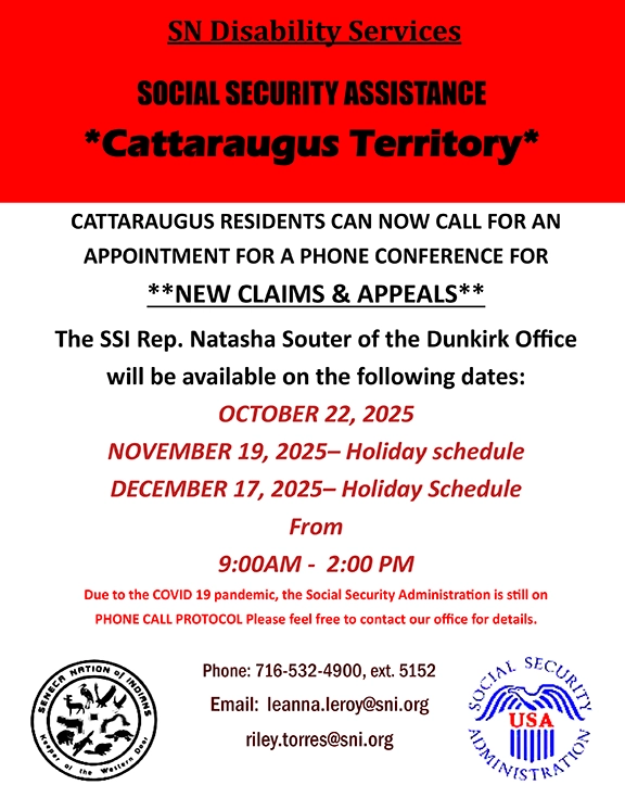 Feel free to contact the Seneca Nation Disability Services Department at 716-532-4900, ext. 5152 or email riley.torres@sni.org OR leanna.leroy@sni.org.