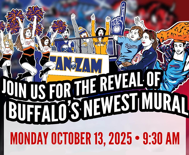 Company officials and team members will unveil an original mural that celebrates Western New York’s hometown professional sports teams and the players, personalities, fans and community that make every game an event. The public is invited to attend the unveiling ceremony on Monday, October 13 at 9:30 a.m. in the rear parking lot at 106 Michigan Ave., across from Seneca Buffalo Creek Casino.