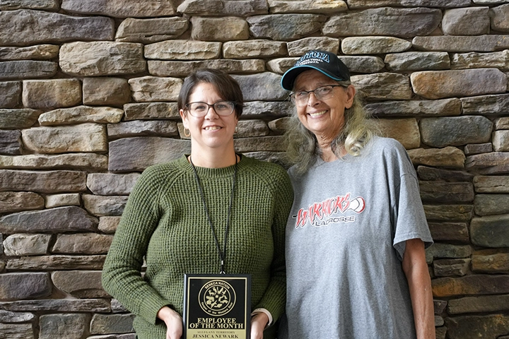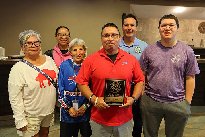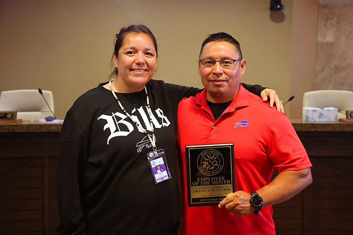 Congratulations to Grant Stevens, Operations Manager, Cattaraugus Community Center and Jessica Newark, Fiscal Compliance Officer who were named the September 2025 Employees of the Month during a special breakfast held in their honor. Each month, The Seneca Nation gathers to recognize a standout employee who demonstrates exemplary qualities in carrying out their daily assigned tasks. Grant and Jessica were chosen for their many years of dedicated service in challenging roles. Awardees enjoy a bonus day off, premiere parking, and a gift card of their choice. We’re all very proud of you!