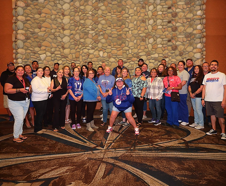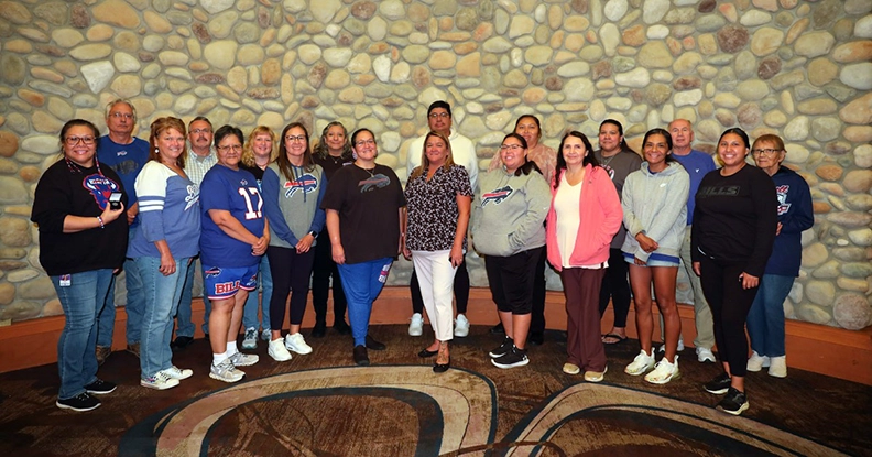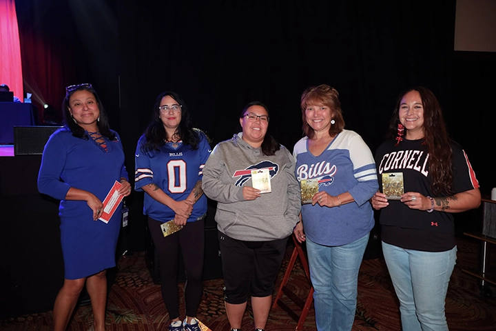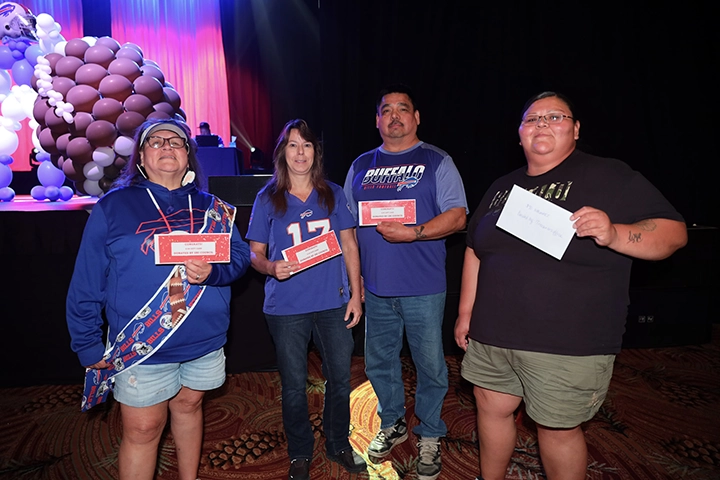 Last month, The Seneca Nation hosted a “Tailgate Party” in honor of our milestone employees. The annual event held at the Seneca Allegany Resort & Casino featured all the traditional Buffalo Bills Red, White, and Blue and chocolate Buffalo Wings; among many prizes and honors. Guests enjoyed a special performance during lunch that featured traditional Haudenosaunee songs and dance. Employees celebrating 10, 15, 20, 25, 30, and 35 were welcomed for an afternoon of fun and friends.