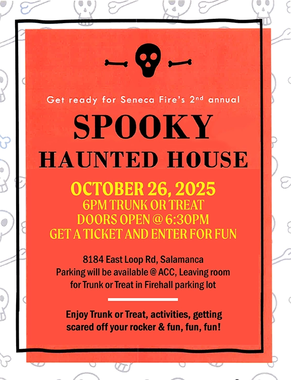 - Allegany Seneca Fire Spooky Haunted House: Sunday, October 26th starting at 6pm