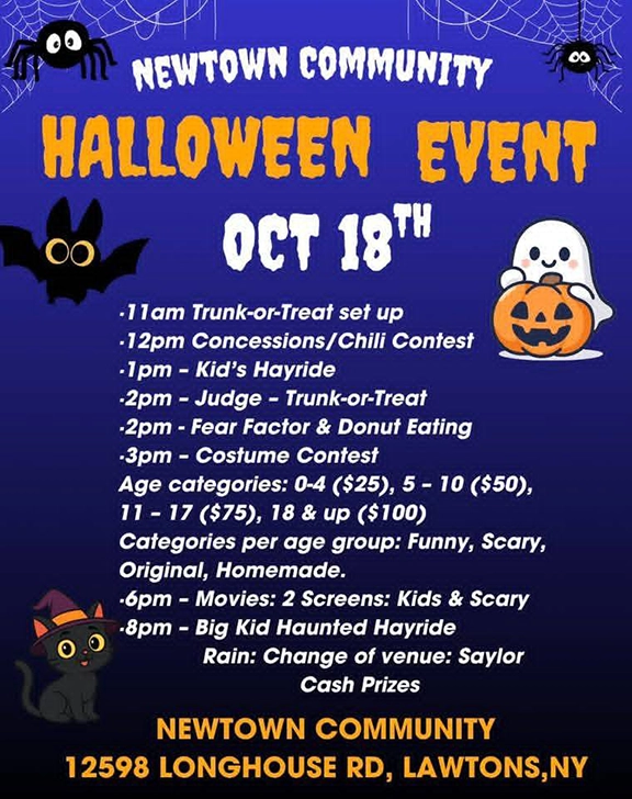 - Newtown Community Halloween Event: Saturday, October 18th, all day starting at 9am w/the volleyball tournament