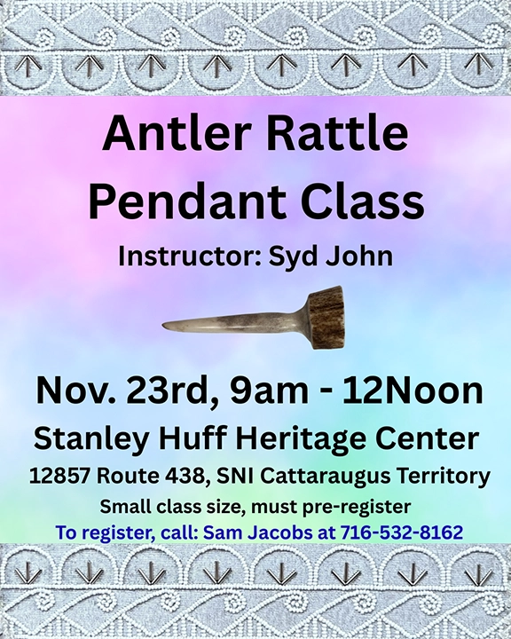 - Antler Rattle Pendant Class w/Syd John: Sunday, November 23rd from 9am-12pm
