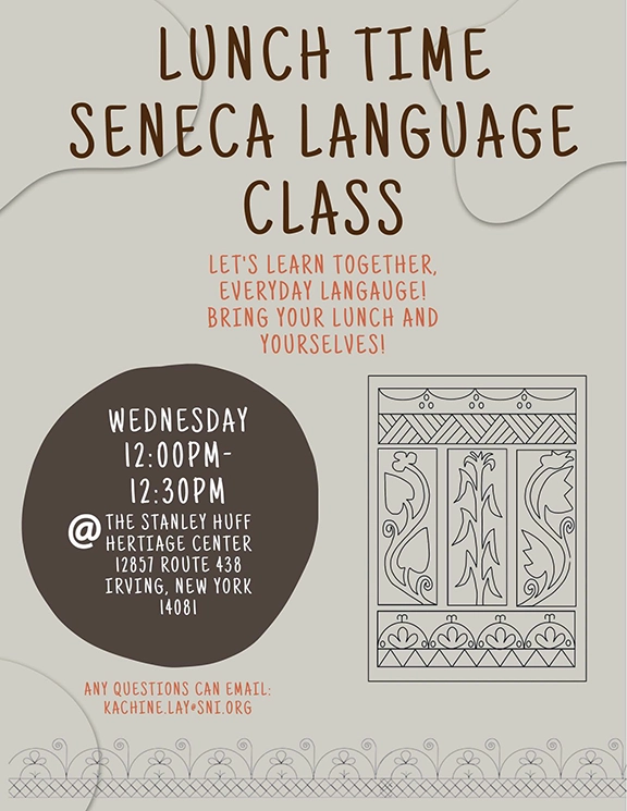 - Lunch Time Seneca Language Class: Wednesdays from 12-12:30pm