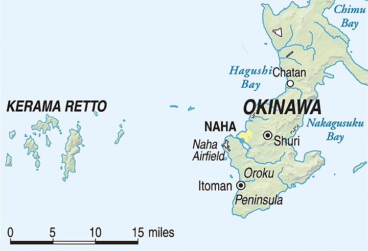 While operating off Okinawa, USS O’Brien (Cdr. William Woddward Outerbridge) was heavily damaged by a Japanese kamikaze aircraft in position 26°16’N, 127°26’E.