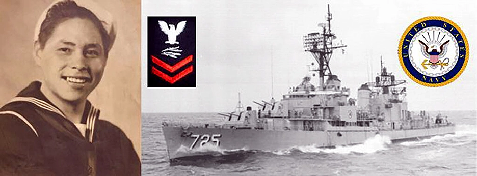 Seaman Arnold White enlisted in the U.S. Navy in 1940 as a Radio Operator and participate in six sea battles, including combat operations aboard the U.S.S. O’Brien (DD 725) during World War II. The combat destroyer vessel U.S.S. O’Brien would be assigned to Task Force 54 in support of the invasion of Kerama Retto islands and securing an advance logistics base during operation “Iceberg,” which became the “Key to Victory at Okinawa.”