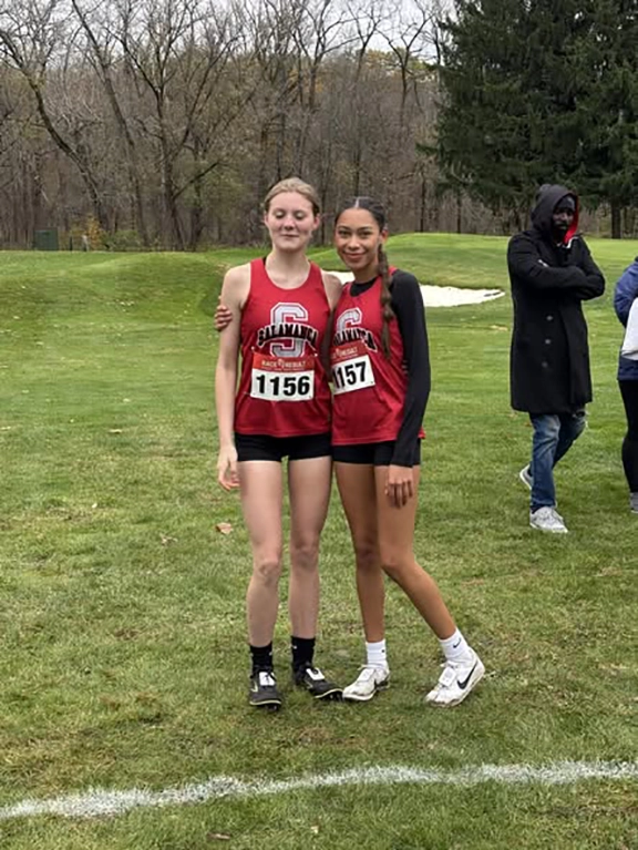 Kaylin Lemon and Lailee Pierce were the first Salamanca runners to compete on the rainy 3.1 mile course. Kaylin finished in 37th place with a time of 22:51 while Lailee came in 53rd with a time of 24:00.
