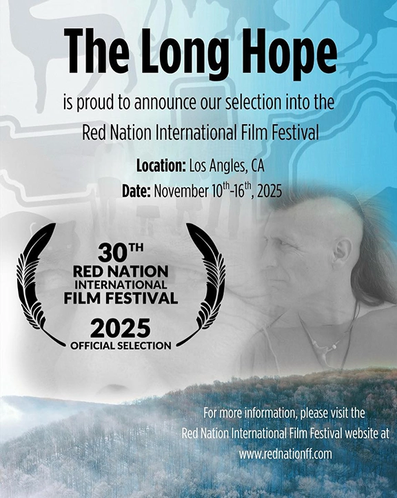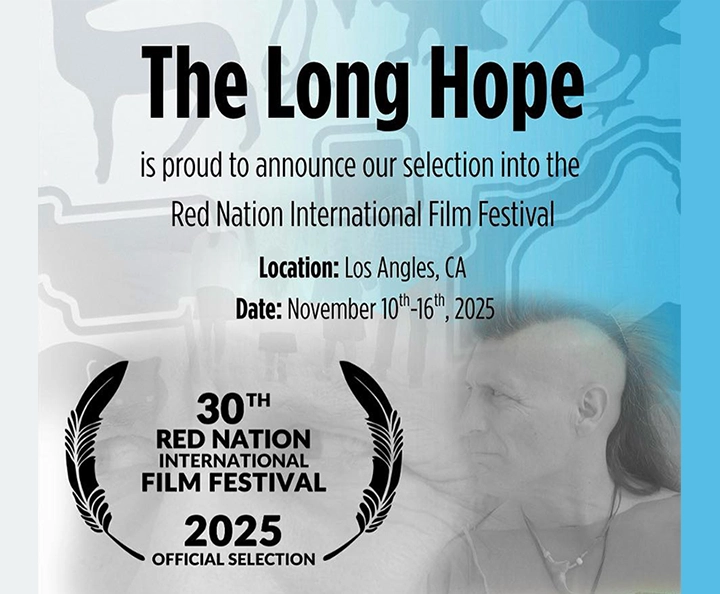 The Long Hope film has been officially selected for the Red Nation International Film Festival in Los Angeles, CA — the premiere Native film festival in the United States. The festival dates: November 10th–16th, 2025 with screening: Saturday, November 15th at 2:40 PM (PDT). Red Nation International Film Festival (RNIFF) is the largest Native Indigenous Film Festival in the world and the first in Los Angeles. A program of Red Nation Celebration Institute (RNCI) the Creative Enterprise by Natives delivering to all people the stories that shape our world.