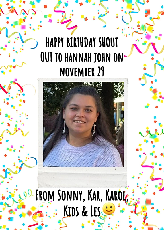 Happy Belated Birthday Shout-out to Hannah on November 29th!