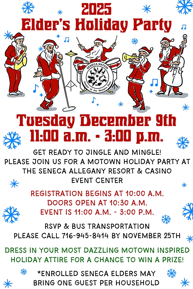 Get ready to jingle and mingle! Join us for a Motown Holiday Party at the Seneca Allegany Resort & Casino Event Center. Registration starts at 10am, Doors open at 10:30am, and the Event runs from 11am-3pm.
