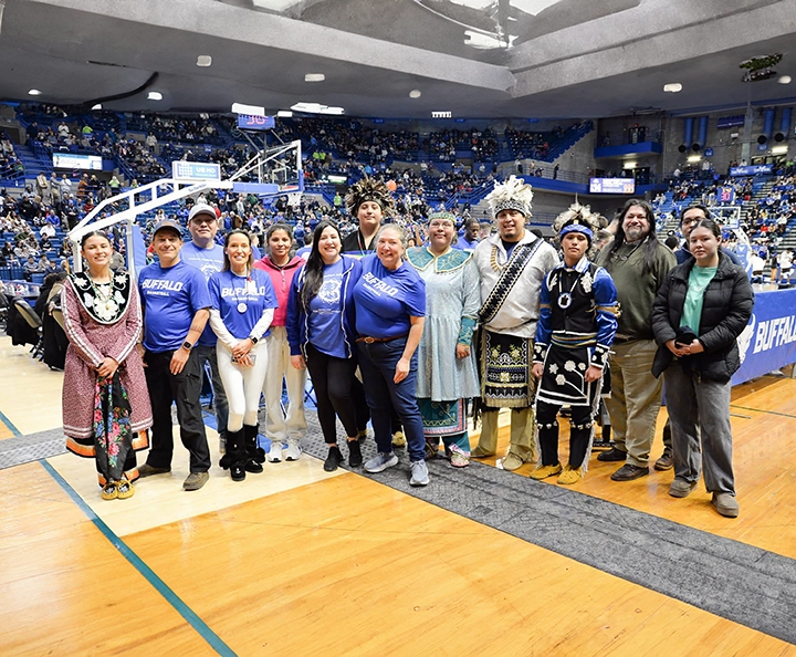 Earlier this month, the Gaëni:yo’s Singers & Dancers participated in Native American Heritage Night at UB Bulls Basketball game. Gaëni:yo’s was on hand to share some social songs & dances. Nya:wëh for the invite and the dance crew!