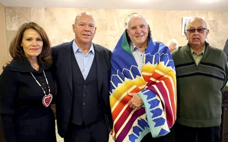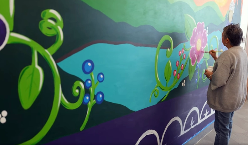 Penelope “Penny” Minner’s mural at the Onöhsagwë:de’ Cultural Center was unveiled on December 20, 2025 during the Winter Art Market.