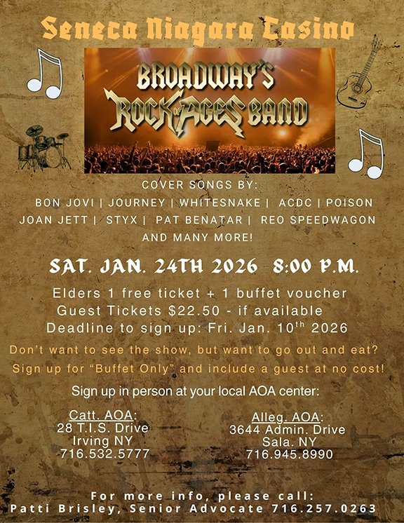 Sign-up sheets for shows will be available 1 MONTH prior to the event. Numbers are turned into the Casino 1 week prior, if you have a change in plans please cancel before then. GUEST TICKET MUST BE PAID FOR AT LEAST 1 WEEK PRIOR TO SHOW *Note: Guests are not guaranteed, they are only accommodated after all Elders tickets. Please arrive 2 hours prior to the show for the buffet at the casinos.