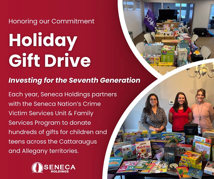 At Seneca Holdings, the annual Holiday Gift Drive is more than a tradition. It’s a reflection of our responsibility to future generations and the values that guide us. This effort honors our commitment to community, connection, and investing for the Seventh Generation.