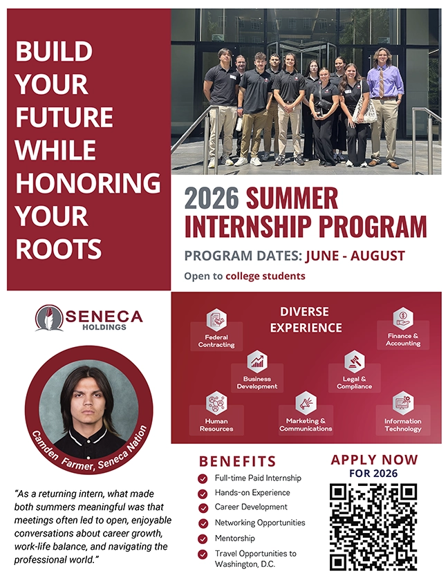 For Seneca Holdings, the mission remains clear: create meaningful opportunities, honor cultural connections, and help the next generation of Native American professionals thrive.