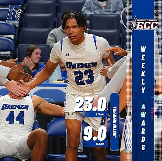 Daemen University’s Justin Hemphill (Seneca) was named the East Coast Conference Player of the Week.