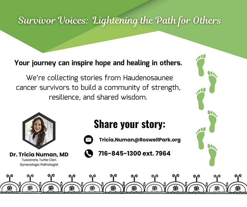 Your journey can inspire hope and healing in others. We’re collecting stories from Haudenosaunee cancer survivors to build a community of strength, resilience, and shared wisdom.