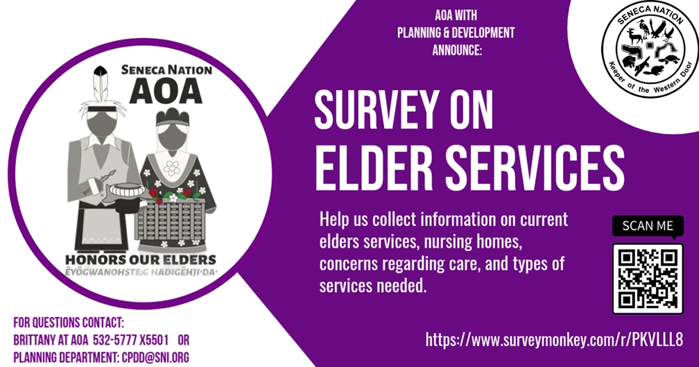 We would like to understand more about the community members we have in nursing homes, concerns regarding their care, and the types of services needed. All questions are voluntary so you can answer one or all. Your help is appreciated as we look to expand and improve services provided to our Seneca Elders.