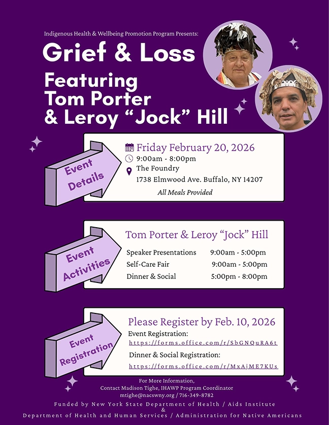 Join us on February 20 for a day of responding to grief and loss, featuring speakers Tom Porter and Leroy “Jock” Hill, a self-care fair, dinner and social.
