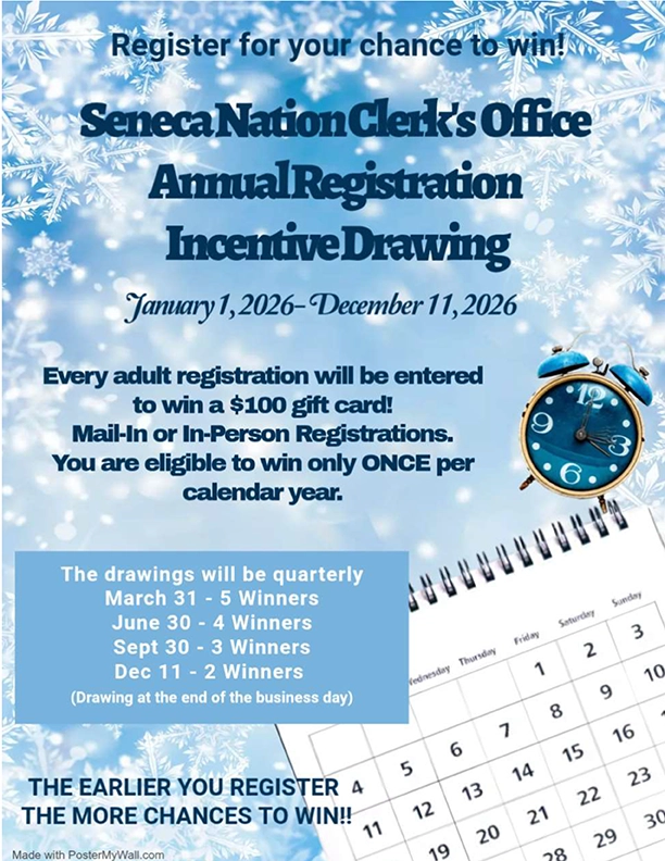 Seneca Nation Clerk’s Office Annual Registration Incentive Drawing