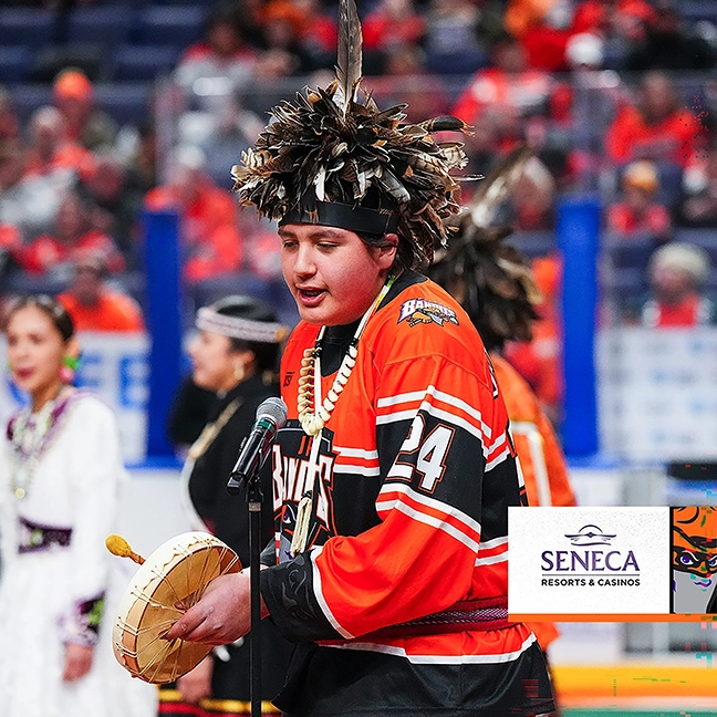 In Celebration of Native American Heritage Night, The Bandits were joined by Chairman of the Board of Directors at Seneca Gaming, Allie George!