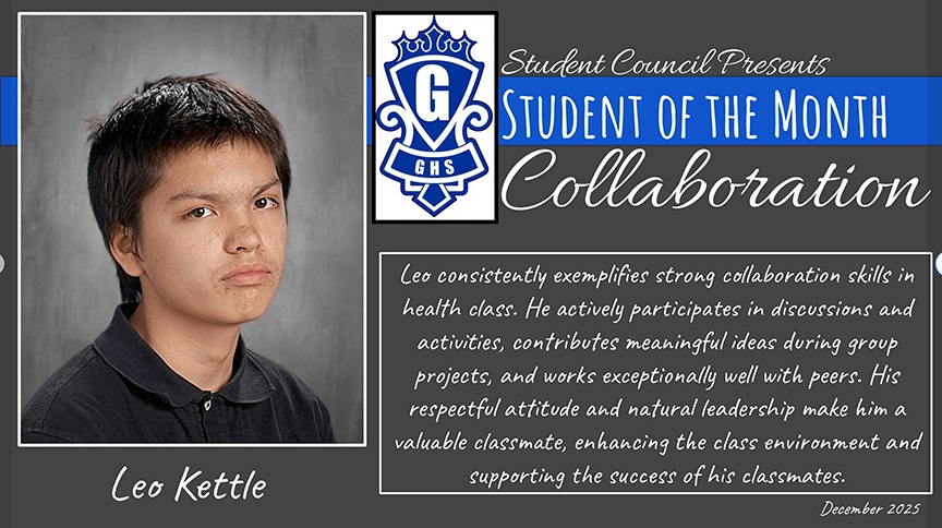 Onöndowa’ga, Hota:yö:nih, Ga’dägësgëö’ Territory who has been named one of the Gowanda Central School District Student Council December 2025 Students of the Month! Students are recognized for their leadership in Collaboration, Creativity, Communication, and Critical Thinking.
