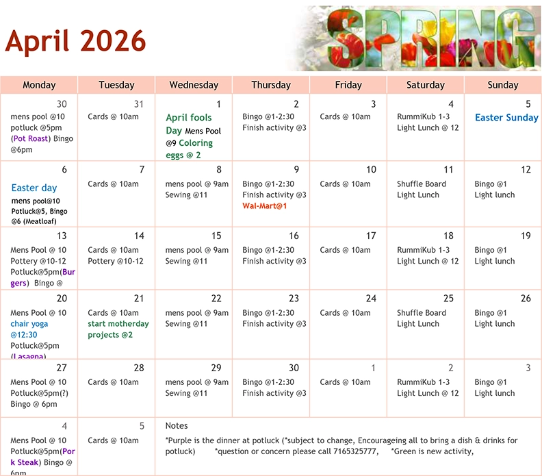Stop down to the Wini Kettle Senior Center and enjoy daily activities throughout the month of April. For more information call Adrian Carry-Moccasin at (716) 532-5777, ext. 5501 for Cattaraugus.