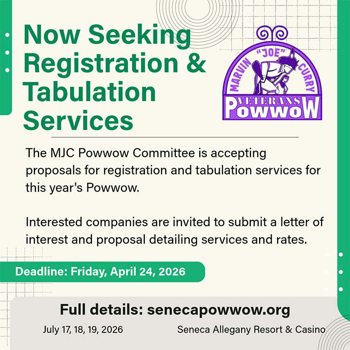 Deadline: Friday, April 24, 2026. Full details available at senecapowwow.org.