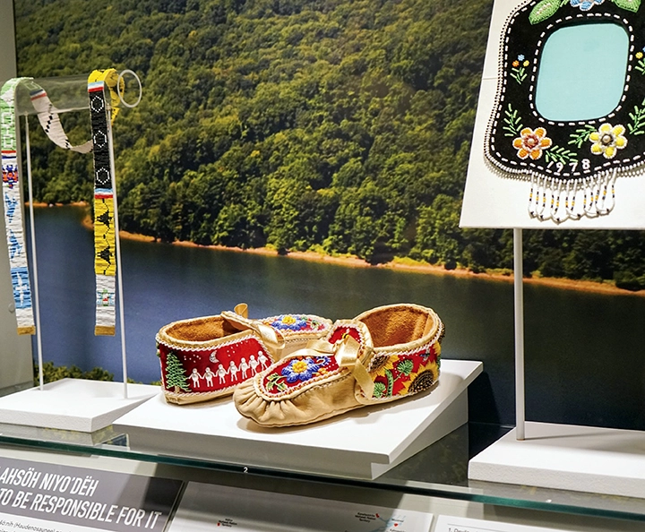 Visitors are invited to experience historic beadwork on long term loan from the Cultural Center—including a rare 19th century flat purse—alongside a newly commissioned pair of moccasins by contemporary artist and educator Samantha Jacobs (Seneca, Turtle Clan), now part of CMoG’s permanent collection.
