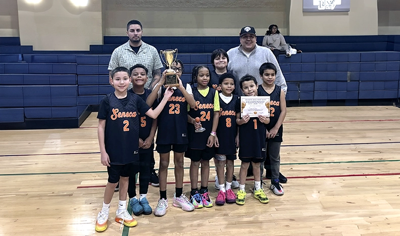 Submitted by Asa Washburn Seneca Fire 14U Basketball Team are 2026 Buffalo PAL Winter League Champions (8 Teams across WNY Participated in January – March). Pictured: Coaches: Justin Jamieson & Ray Cortes Sr. Players: Jax Jamieson Zuriah Cortes, Ace Washburn, Rayeden Cortes, Mackenyan Brooks, Gabe Cortes, Jakob Kennedy, August Jamieson-Wingard, Braxton Sanchez.